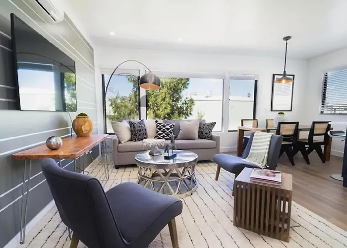 93m²のTwo Bedroom Duplex Apartment In Venice ロサンゼルスは、Southeast Asia POWから徒歩でわずか6分で、ロサンゼルス国際空港から5キロメートルの場所にあります。 Venice Beach Drum Circleすぐ近くに位置するこの広々としたアパートは、海の景色を見渡せるテラスを提供しています。